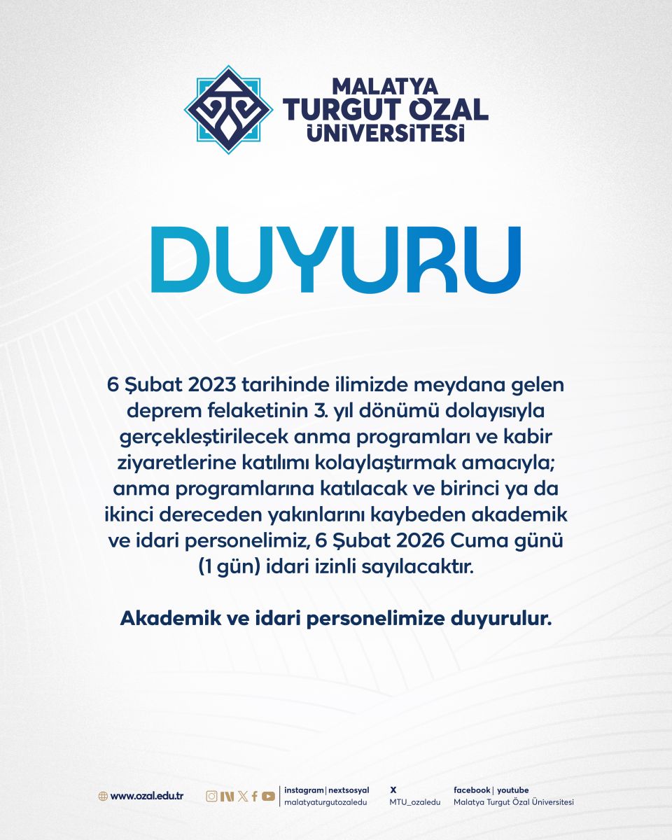 6 Şubat Depremi Anma Programları Kapsamında İdari İzin Duyurusu Güncellendiği Tarih: 05-02-2026 16:44 |