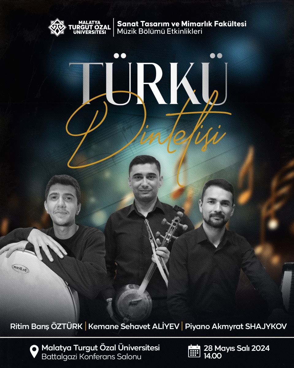 Türkü Dinletisi Güncellendiği Tarih: 27-05-2024 14:29 | Başlangıç Tarihi: 28-05-2024 14:00 | Bitiş Tarihi: 28-05-2024 16:00 | YER: Malatya Turgut Özal Üniversitesi
