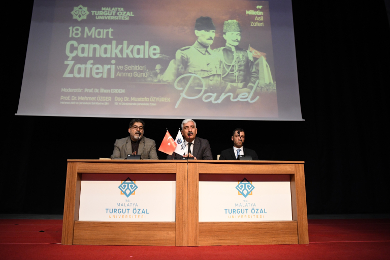Türk milletinin bağımsızlık ve vatan sevgisini tüm dünyaya gösterdiği destansı bir mücadelesi olan 18 Mart Çanakkale Zaferi Malatya Turgut Özal Üniversitesinde düzenlenen panel ile anıldı. Rektör Yardımcısı Prof. Dr. İlhan Erdem’in moderatörlüğünü gerçekleştirdiği panele, Malatya Vali Yardımcısı Ahmet Korkmaz, Battalgazi Belediyesi Başkan Yardımcısı İsmet Sarıgül, fakülte dekanları, akademik ve idari personel ile öğrenciler katılım sağladı.