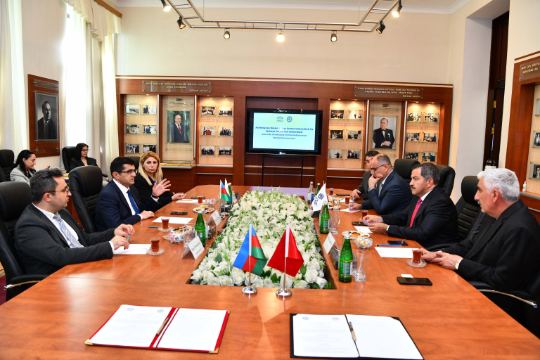 Bu bağlamda Azerbaycan’da Uluslararası Bakü Haydar Aliyev Havaalanı’nda çocuklar tarafından milli misafirperverlikle karşılanan MTÜ Rektörü  Prof. Dr. Recep BENTLİ, Rektör Yardımcısı Prof. Dr. İlhan ERDEM, Sosyal ve Beşeri Bilimler Fakültesi Dekanı Prof. Dr. Oğuzhan GÖKTOLGA ve Radyo, Televizyon ve Sinema Bölüm Başkanı Doç. Dr. Vefalı ENSER, ilk önce ADNSU’da gerçekleştirilen ikili işbirliği protokolü imza töreninde yer aldılar. İki üniversite arasındaki iş birliğinin önemli detaylarını ADNSU Rektörü Doç. Dr. Rüfet AZİZOV ile masaya yatıran  Rektör BENTLİ, bilimsel ve akademik ilişkileri güçlendirmeye yönelik hazırlanan ve ortak araştırma projeleri, öğrenci ve akademisyen değişim programları ile çeşitli alanlarda yapılacak iş birliklerini içeren protokolün her iki üniversite adına hayırlı olmasını temenni ederek, bu tür anlaşmaların Türk dünyası akademik birliğinin güçlendirilmesine önemli katkılar sunacağını ifade etti.