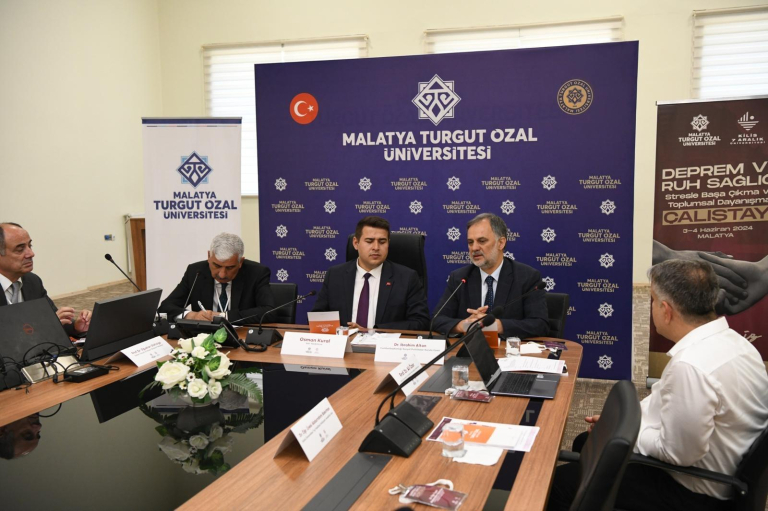 Malatya Turgut Özal Üniversitesinde iki gün sürecek olan “Deprem ve Ruh Sağlığı” çalıştayının açılış programı yapıldı. Malatya Turgut Özal Üniversitesi Psikoloji Bölümü tarafından Battalgazi Konferans Salonu’nda düzenlenen çalıştayın açılış programına Malatya Valisi Ersin Yazıcı, Cumhurbaşkanlığı Sosyal Politikalar Kurulu Üyesi Dr. İbrahim Altan, Kilis Yedi Aralık Üniversitesi Rektörü Prof. Dr. Mustafa Doğan Karacoşkun, Malatya Turgut Özal Üniversitesi Rektörü Prof. Dr. Recep Bentli, Vali Yardımcısı Osman Kural, İl Jandarma Komutanı J. Kd. Alb. Ercan ALTIN, Yeşilyurt Belediye Başkanı Prof. Dr. İlhan Geçit, Arapgir Belediye Başkanı Haluk Cömertoğlu, Battalgazi Belediye Başkan Yardımcısı Metin Ünlü, İl Müftüsü Ramazan Dolu, SGK İl Müdürü Tekin Kutlu, İl Milli Eğitim Müdür Yardımcısı Ekrem Demir, Kızılay Şube Başkanı Sadi Ergül, Organik Meyve Üreticileri Birliği Başkanı İlhan Tursun, İl Göç İdaresi Müdürü Mahmut Kurtuluş, Türkiye İstatistik Kurumu İl Müdürü Ali Tüfekçi, akademik ve idari personel ile öğrenciler katıldı.