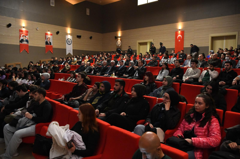 Tarih Bölümü Öğretim Üyesi Doç. Dr. Mustafa ÖZYÜREK konuşmasında, Çanakkale Savaşlarının dünya tarihinde ender rastlanan deniz ve karar muharebelerinden oluştuğunu ifade etti. Türk Ordusu’nun 3 Kasım 1914-18 Mart 1915 tarihleri arasında Çanakkale Deniz Muharebeleri ve 25 Nisan 1915-9 Ocak 1916 tarihleri arasında Çanakkale Kara Muharebeleri ile büyük bir zafer kazanarak Çanakkale’nin geçilmez olduğunu bütün dünyaya ispat ettiğini belirtti. Bu zaferde Türk Ordusu’nun savaş tecrübesi, harp kabiliyeti, komuta heyeti ve askerlerin cesaret, azim ve iradesi ile milletimizin inanç ve fedakârlığının birinci derecede etkili olduğunu ifade ederek, Çanakkale Zaferi ile Albay Mustafa Kemal Bey’in “Anafartalar Kahramanı” olarak ün kazanması hakkında bilgiler verdi.