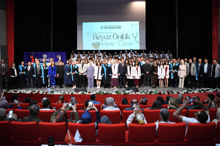 Malatya Turgut Özal Üniversitesi (MTÜ) Tıp Fakültesi’nin 2025–2026 eğitim-öğretim yılı birinci sınıf öğrencileri, hekimlik mesleğine ilk adımlarını attıkları Beyaz Önlük Giyme Töreni’nde bir araya geldi. Battalgazi Konferans Salonu’nda düzenlenen törene, Rektör Prof. Dr. Recep Bentli, Rektör Yardımcısı ve Tıp Fakültesi Dekanı Prof. Dr. Ahmet Selim Özkan, Rektör Yardımcısı Orhan Gündüz, fakülte dekanları, akademik-idari personel, öğrenciler ve aileler katıldı. Tören, Saygı Duruşu ve İstiklal Marşı ile başladı. Program kapsamında Tıp Fakültesi tanıtım filmi gösterildi, ardından Dr. Gökmen Karataş ve öğrencileri tarafından gerçekleştirilen müzik dinletisi katılımcılara keyifli anlar yaşattı.