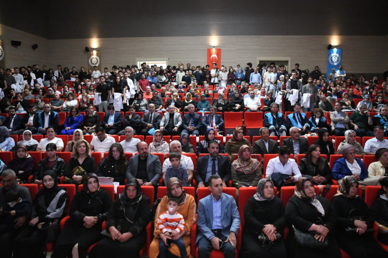 Gazze’ye de değinen Dekan Özkan, “Gazze’deki meslektaşlarımızın gösterdiği kararlılık ve fedakârlık, bugün burada hepimizin ilham kaynağıdır. Zorlukların gölgesinde bile insan hayatını önceleyen bu kahramanlar, canları pahasına hastaları kurtarmak için geceyi gündüze katıyorlar; hastaneyi terk etmeyip ekip çalışmasını en yüksek düzeyde sürdürerek tıbbi müdahalelerin sürekliliğini sağlıyorlar. Onlar, savaşın ve baskının gölgesinde bile umut ışığını yakmayı başaran, mesleğin en insancıl yönünü hayata geçiren kişiler olarak karşımızdalar. Bu yüksek fedakârlık, tıbbın evrensel amacını en yalın haliyle hatırlatır: hastayı yalnız bırakmamak, acıyı hafifletmek ve umudu canlı tutmak. Böyle insanlar, bize mesleğin yalnızca teknik becerilerden ibaret olmadığını; dayanışma, vicdan ve insan sevgisiyle yürünen bir yol olduğunu gösterir. Sizler de akademik bilgiyle bu insani yönü güçlendirecek, gerektiğinde zorluklar karşısında dimdik ayakta kalacak olanlar olacaksınız.” dedi.