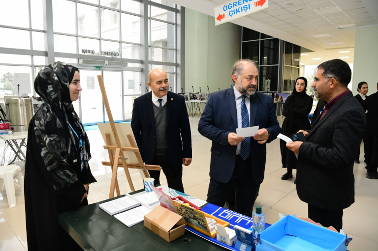 MTÜ Rektör Yardımcısı Prof. Dr. Ahmet Selim Özkan, Sağlık Bilimleri Fakültesi Dekanı Prof. Dr. Şahin Direkel ve MTÜ Genel Sekreteri Abuzer Gelse kermes alanında kurulan stantları gezerek öğrencilerden yürütülen çalışmalar hakkında bilgi aldı.