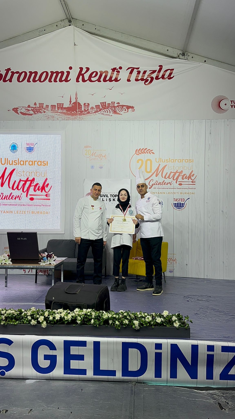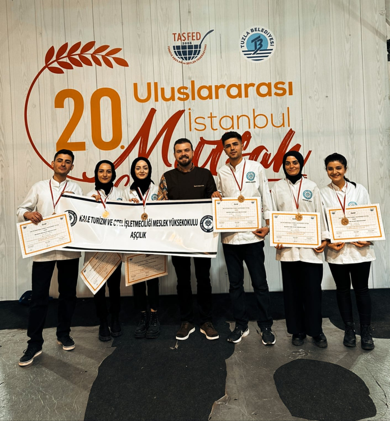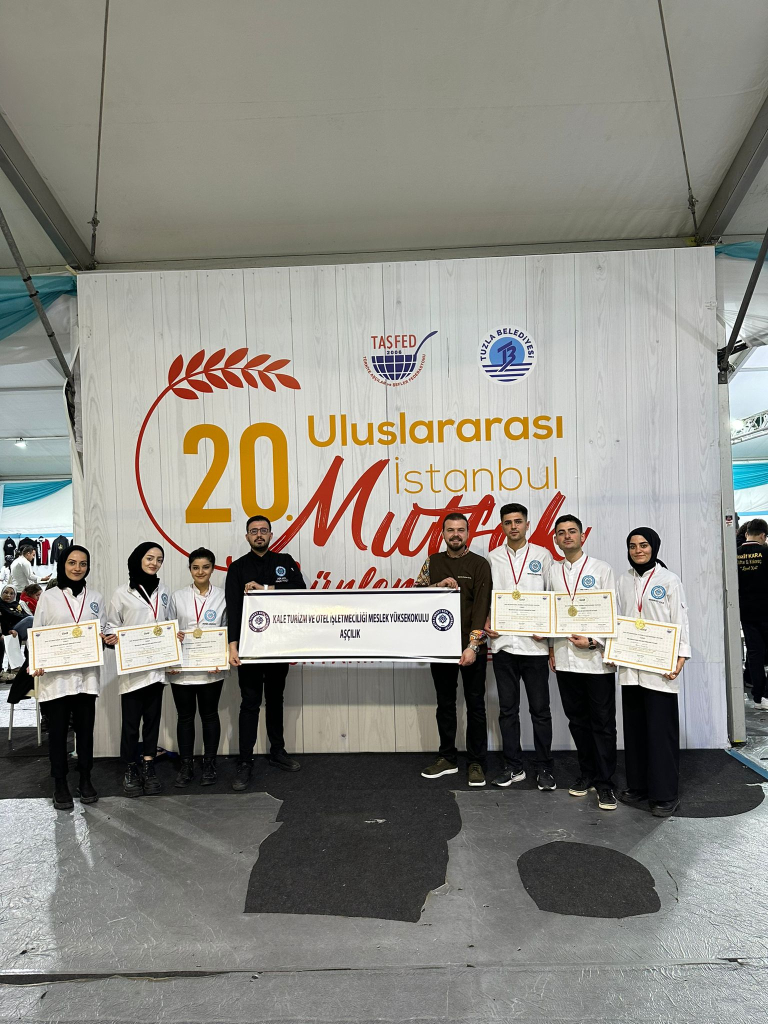 Türkiye Aşçılar ve Şefler Federasyonu (TAŞFED) tarafından organize edilen ve 32 ülkeden 1500 katılımcının yer aldığı 20. Uluslararası İstanbul Mutfak Günleri yarışmasında, Kale Turizm ve Otel İşletmeciliği Meslek Yüksekokulu Aşçılık Programı öğrencilerimiz, katılmış oldukları 6 kategorideki yarışmaların tamamından altın madalya ile döndü. Öğrencilerimizin yarışmaya hazırlanmasında büyük emek harcayan, Kale Turizm ve Otel İşletmeciliği Öğretim Elemanlarımızdan Öğr. Gör. Hüseyin DENİZ’i, Öğr. Gör. Ünalcan KUTAL’ı, Öğr. Gör. Yaşar Can ATAŞ’ı ve yarışmada altın madalya kazanan pizza kategorisinde Ramazan SERTDEMİR'i, Asude ERİNAN'ı, Yaren HASKUL'u , makarna kategorisinde Cem Eren ÇAYIRLI'yı, Zehra KARADAĞ'ı, tatlı kategorisinde Nur Hayat KOCA'yı, tebrik eder başarılarının devamını dileriz.