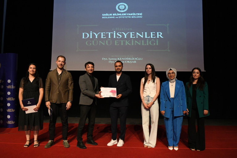 Günün anlam ve önemini belirten konuşmayı yapan Sağlık Bilimleri Fakültesi Beslenme ve Diyetetik Bölüm Başkanı Dr. Öğr. Üyesi Havva Esra Tütüncü şu ifadelere yer verdi: “Diyetisyenler, büyüme gelişme ve ömür boyu tüm bireylerin sağlığının korunması, geliştirilmesi, yaşam kalitesinin artırılması için beslenme biliminin ilkeleri doğrultusunda bireysel ve toplu beslenmenin plan ve programlarını oluşturur; kurum ve kuruluşların özelliklerine göre bireylerin günlük enerji ve besin öğelerini hesaplar, bu hesaplara uygun olarak günlük, haftalık, aylık menüler düzenler. Sağlığın korunması ve sürdürülmesi temel olup hastalık durumlarının önlenmesi temel amaçtır. Hastalık durumunda ise tıbbi beslenme tedavisi planlayan kişilerdir.”