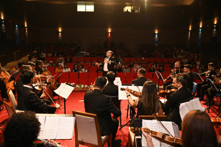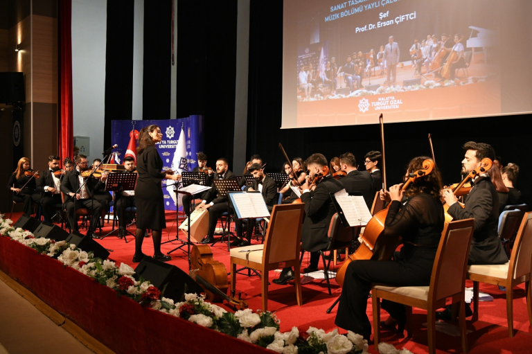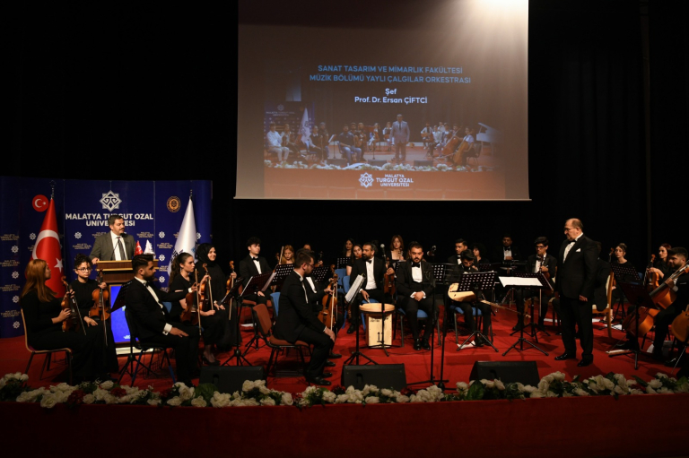 Malatya Turgut Özal Üniversitesi Sanat Tasarım ve Mimarlık Fakültesi Müzik Bölümü Yaylı Çalgılar Orkestrası tarafından Battalgazi Konferans Salonu’nda konser düzenlendi. Fakülte Dekanı Prof. Dr. Ersan Çiftci’nin orkestra şefi olarak yer aldığı konsere rektör Prof. Dr. Recep Bentli, Rektör Yardımcısı Prof. Dr. Orhan Gündüz, Genel Sekreter Doç. Dr. Ahmet Selim Özkan ile Malatya İl Kültür ve Turizm Müdürü Yener Oba katıldı. Konser, üniversitenin akademik ve idari personeli ile öğrencilerden yoğun ilgi gördü. Keman, viyola, viyolonsel, flüt, piyano, perküsyon ve bağlama eşliğinde icra edilen eserler dinleyicilere keyifli anlar yaşattı.