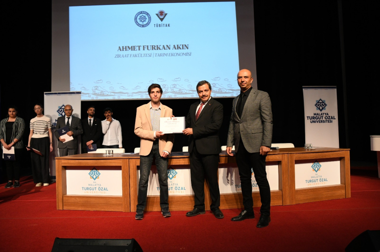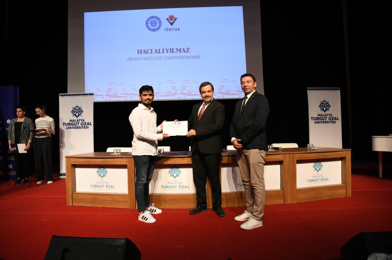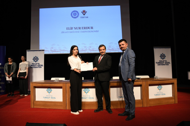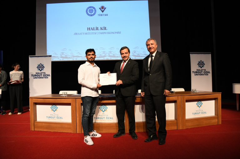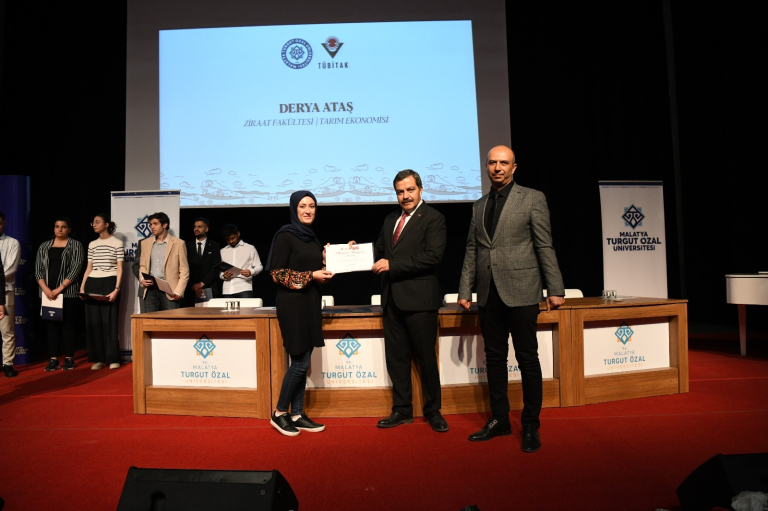 Malatya Turgut Özal Üniversitesi Rektörü Prof. Dr. Recep Bentli konuşmasında “Bazı yıllar sadece 1 başvurunun yapıldığı TÜBİTAK 2209 A Lisans Öğrenci Projeleri başvurularında 2023 yılından önce en fazla başvuru, yapılan 10 başvurunun 3’ünün kabul edildiği 2021 yılı olmuştur. 2023 yılında üniversitemizde bu proje başlığı kapsamında 34 başvuru yapılmış ve 20 tanesi kabul edilmiştir. Bu sayılarla birlikte TÜBİTAK 2209 A Lisans Öğrenci Projeleri bağlamında çoğu üniversiteyi geride bıraktık. Bu rakamı tüm üniversite bazında arttırmak istiyoruz. Bizim için projeler hem öğrencilerimizin yetişmesi ve daha araştırmacı bir kimliğe bürünmesi, hem de üniversitelerin sıralama ölçeklerinde kullanılan parametrelerden biri olduğu için oldukça önemli. Bu vesilelerle üniversitemiz yurt içindeki üniversiteler arasında olması gereken sıralamaya inşallah çıkacak. Bu nedenle bu programı düzenleyen hocalarımıza ve öğrencilerimizi tebrik ediyor ve katılımlarından ötürü misafirlerimize teşekkür ediyorum.” dedi.