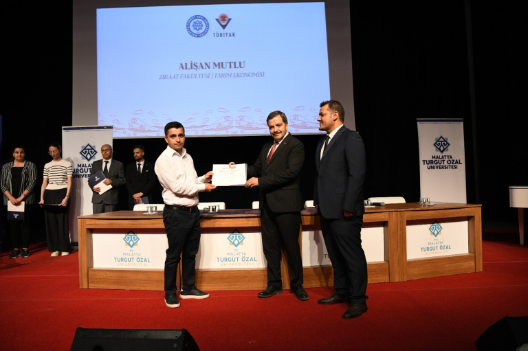 TÜBİTAK 2209/A Üniversite Öğrencileri Araştırma Projeleri Destekleme Programı kapsamında 2023/2 döneminde başvuruları kabul edilerek desteklenmeye hak kazanan Üniversitemiz öğrencilerine belge takdimi töreni düzenlendi. Törene Rektör Prof. Dr. Recep Bentli, Tarım Reformu Genel Müdür Yardımcısı Mehmet Kilci, Rektör Yardımcısı Prof. Dr. Orhan Gündüz, Genel Sekreter Doç. Dr. Ahmet Selim Özkan, Sağlık Bilimleri Fakültesi Dekanı Prof. Dr. Şahin Direkel, Tarım ve Orman İl Müdürü Osman Akar, Kayısı Araştırma Enstitüsü Müdürü Abdullah Erdoğan, STK Temsilcileri, akademik personel ve öğrenciler katıldı.