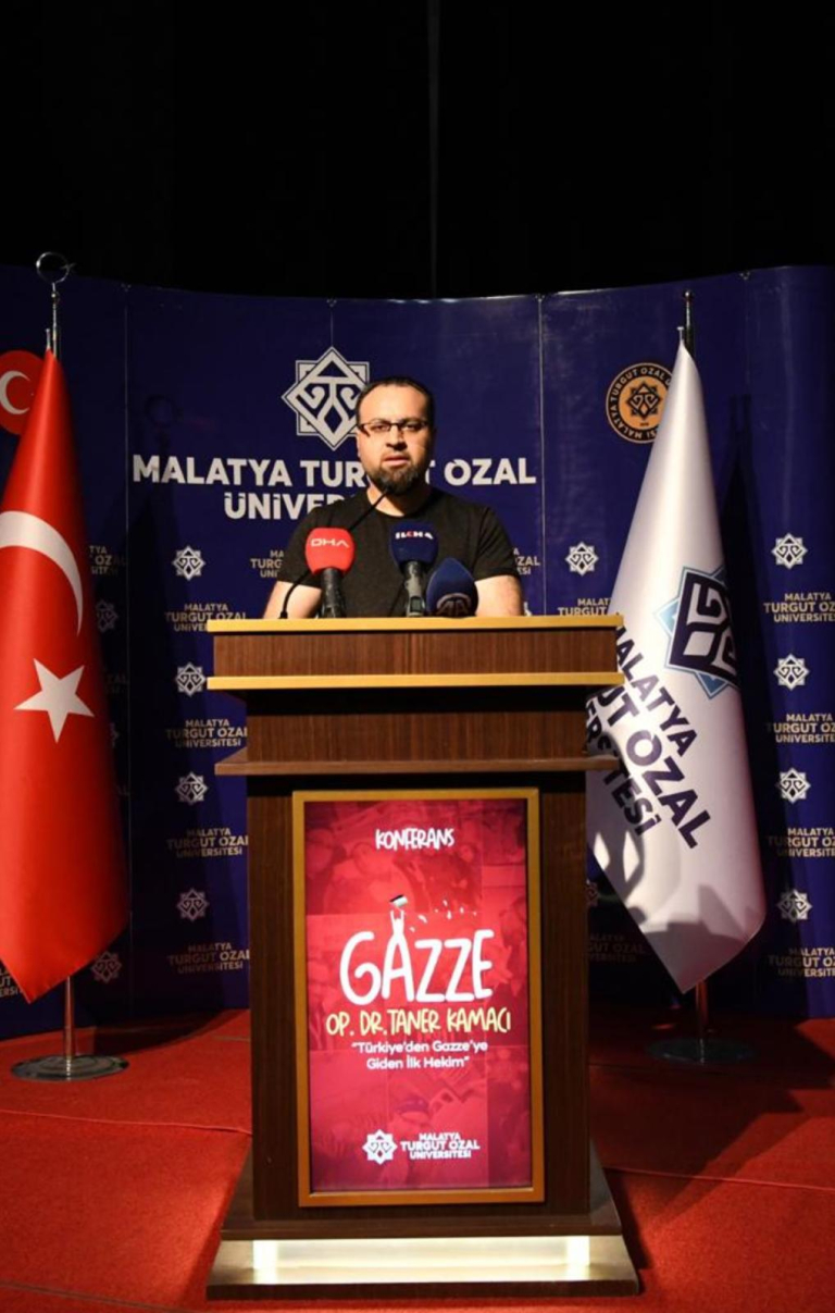 Terör devleti İsrail’in, Filistin halkına uyguladığı insanlık dışı askeri operasyonlar soykırım seviyesine ulaşmaya devam ediyor. Dünya genelinde sağduyulu birçok toplum ve ulus bu soykırım karşısında İsrail’i kınarken, dünyada hâkim güç konumda yer alan bazı devletler maalesef bu süreçte sınıfta kalıyor. Bu nedenle Malatya Turgut Özal Üniversitesi Türkiye’den Gazze’ye giden ve Filistinli kardeşlerimizi tedavi eden ilk hekim Operatör Dr. Taner Kamacı’nın konuşmacı olduğu bir konferans düzenledi.